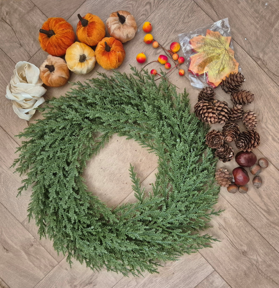 Egy igazán különleges, handmade élményt kínálok Neked: minden alapanyagot összekészítettem, amire szükséged lehet egy csodás, őszi hangulatú kopogtató elkészítéséhez.