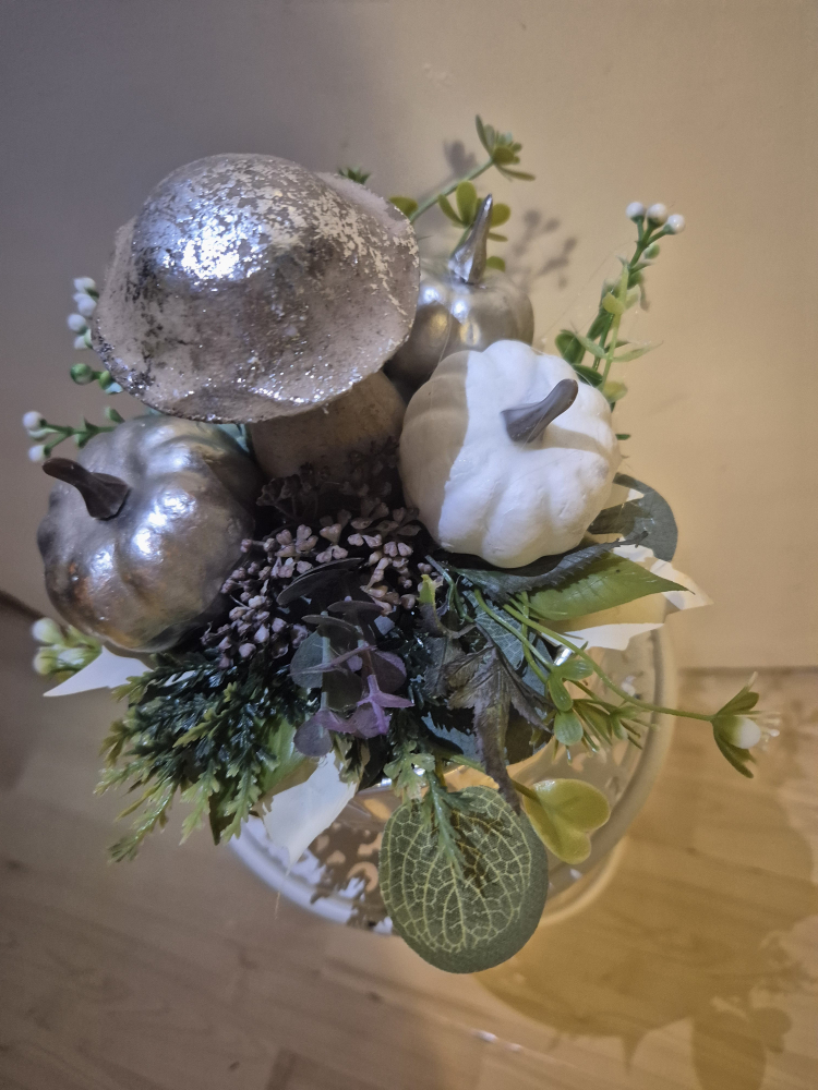 Az ősz legfinomabb arca. Hófehér tök, ezüst gomba, minden részletében elegáns és tiszta. Egy csendes, mégis ünnepi hangulat, ami megnyugtat és felemel.