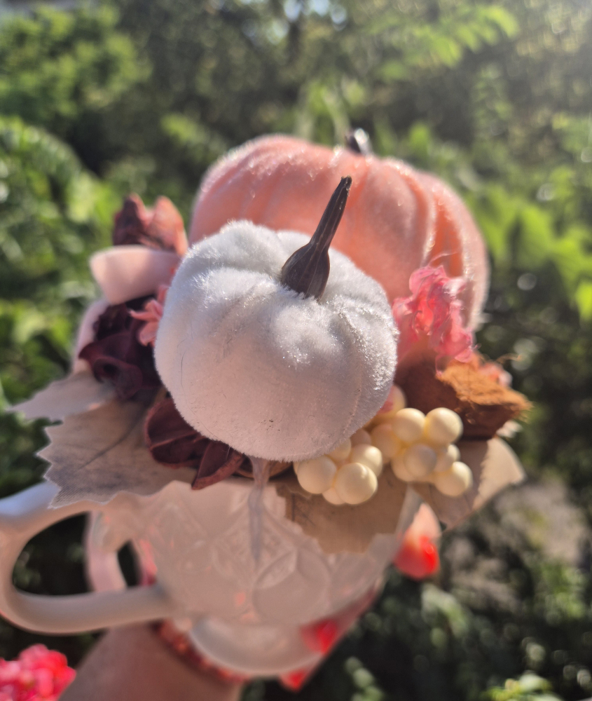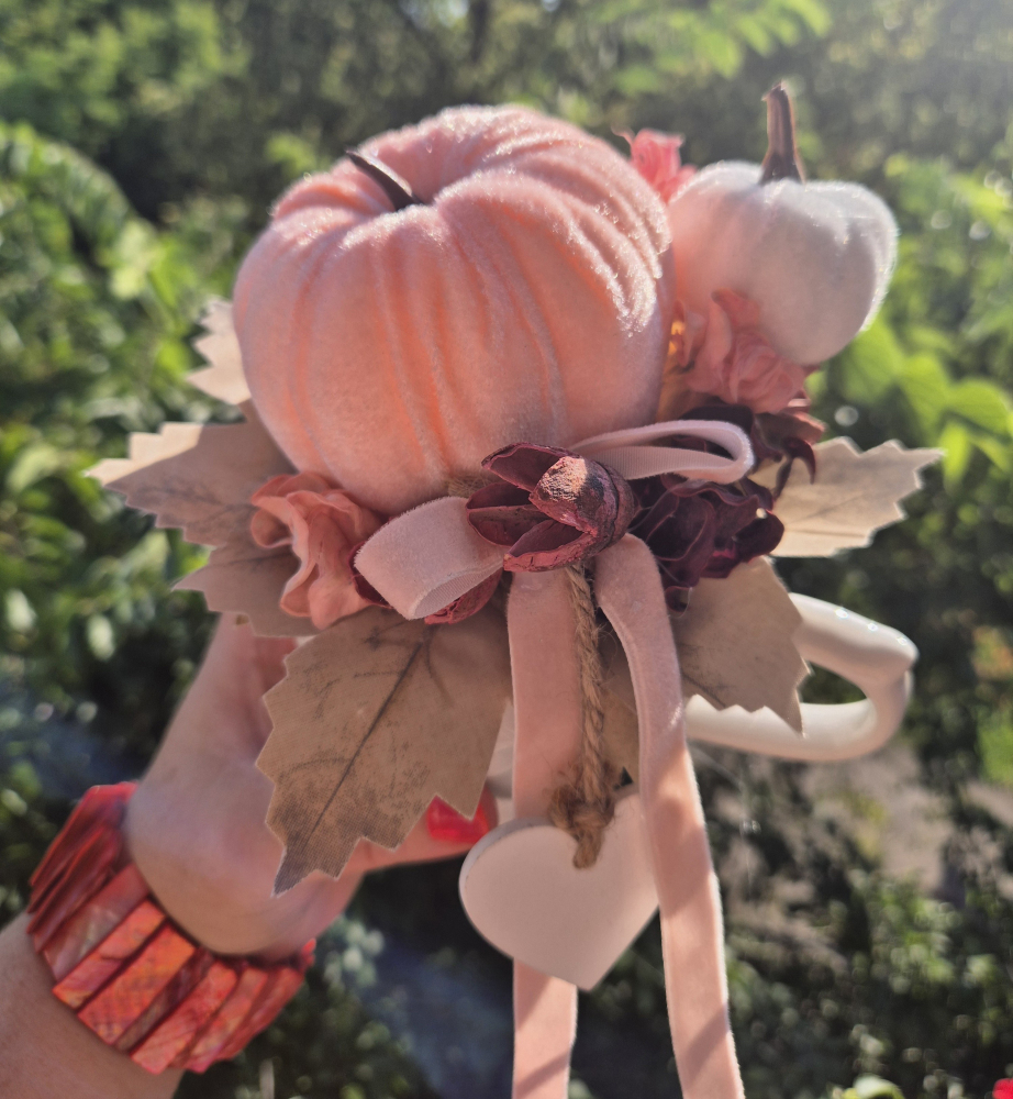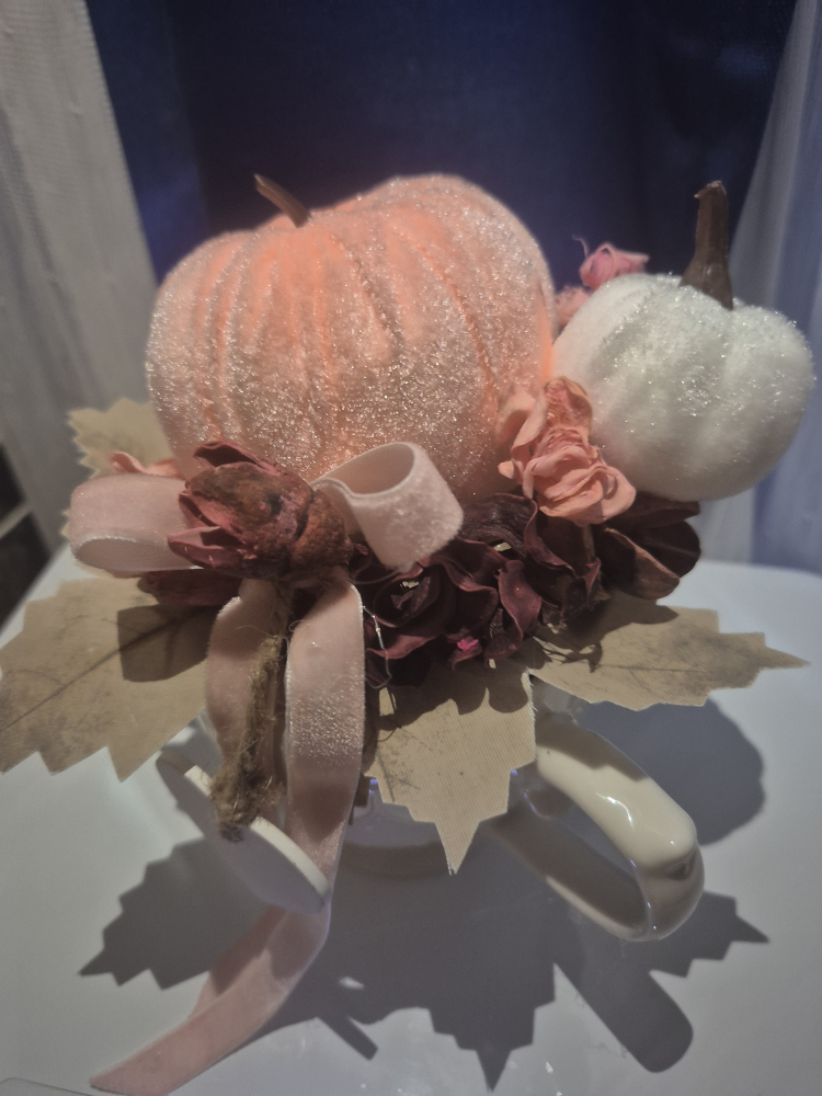 Belsejét aprólékosan megkomponált dekoráció tölti meg: puha pasztell árnyalatú, rózsaszín és fehér tökök, melyek egyedi, elegáns színvilágukkal újraértelmezik az őszi hangulatot. A díszítés kiegészítői harmonikus összhangot alkotnak, így bármely enteriőrbe könnyedén beilleszthető.