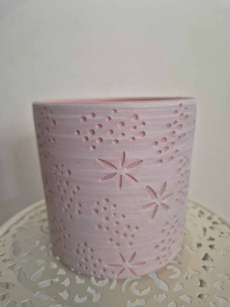 Flowers Garden vintage fém kaspó 14,5 cm méhselyt mintás rózsaszín