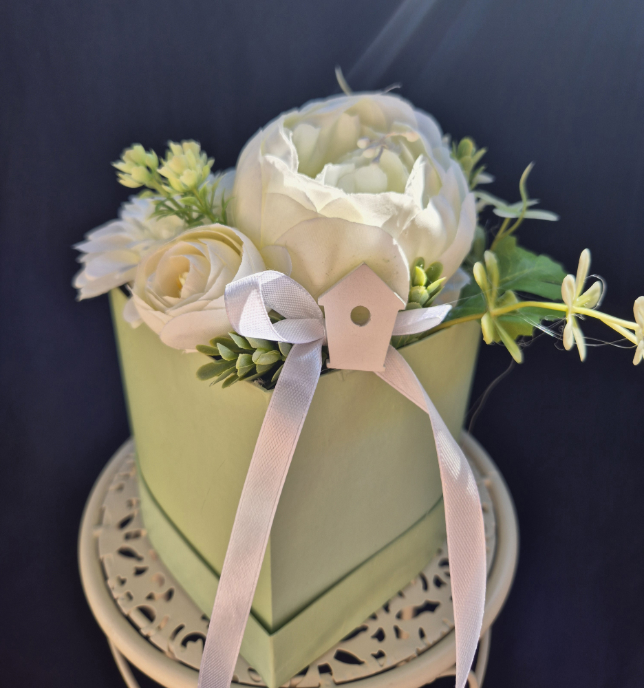 Romantikus virágboxunk nyírfa dobozban. Merülj el a romantika időtlen bájában ezzel a kézzel készített művirágboxszal!